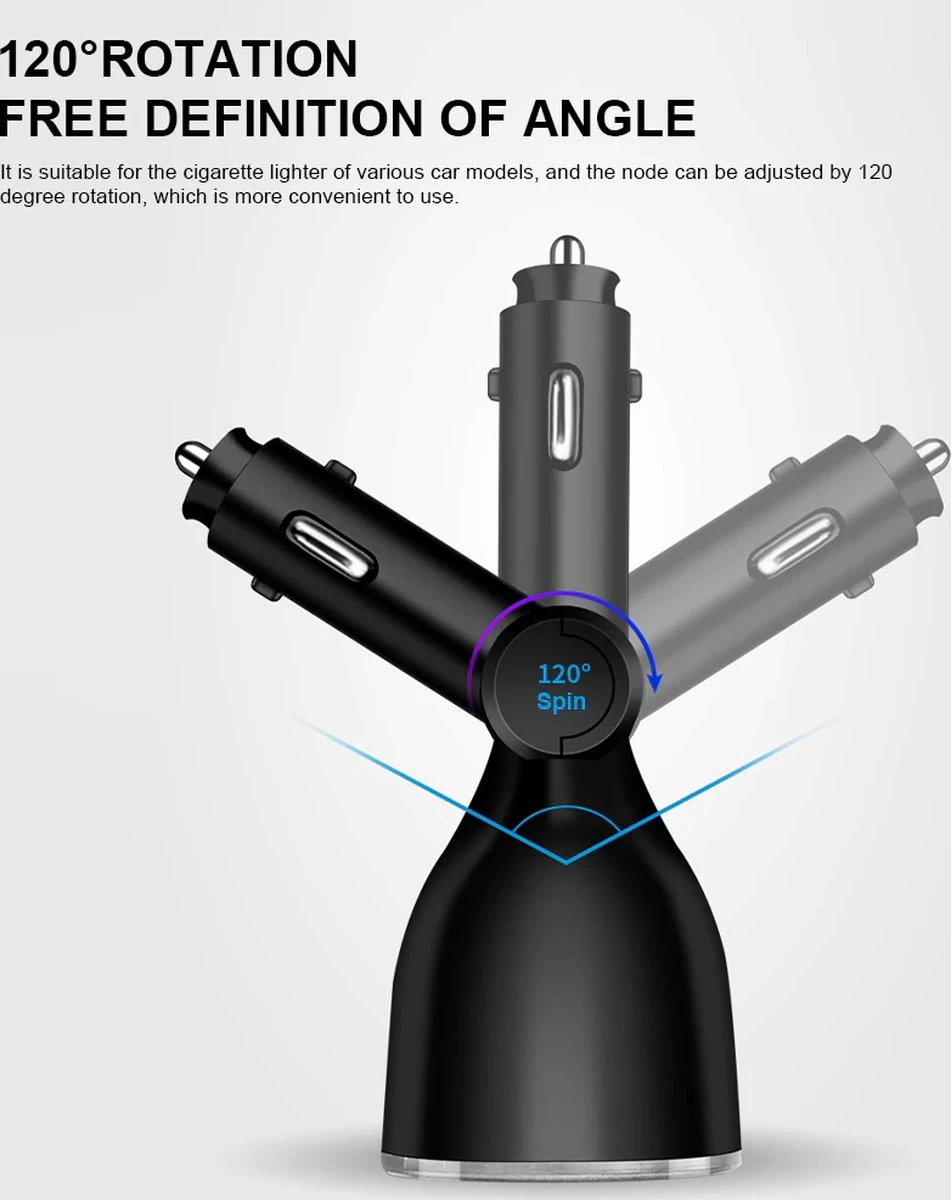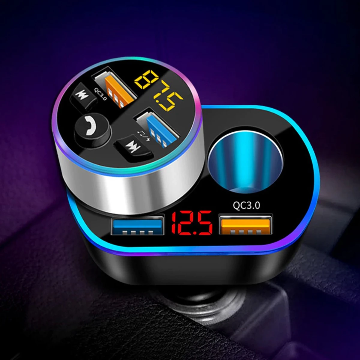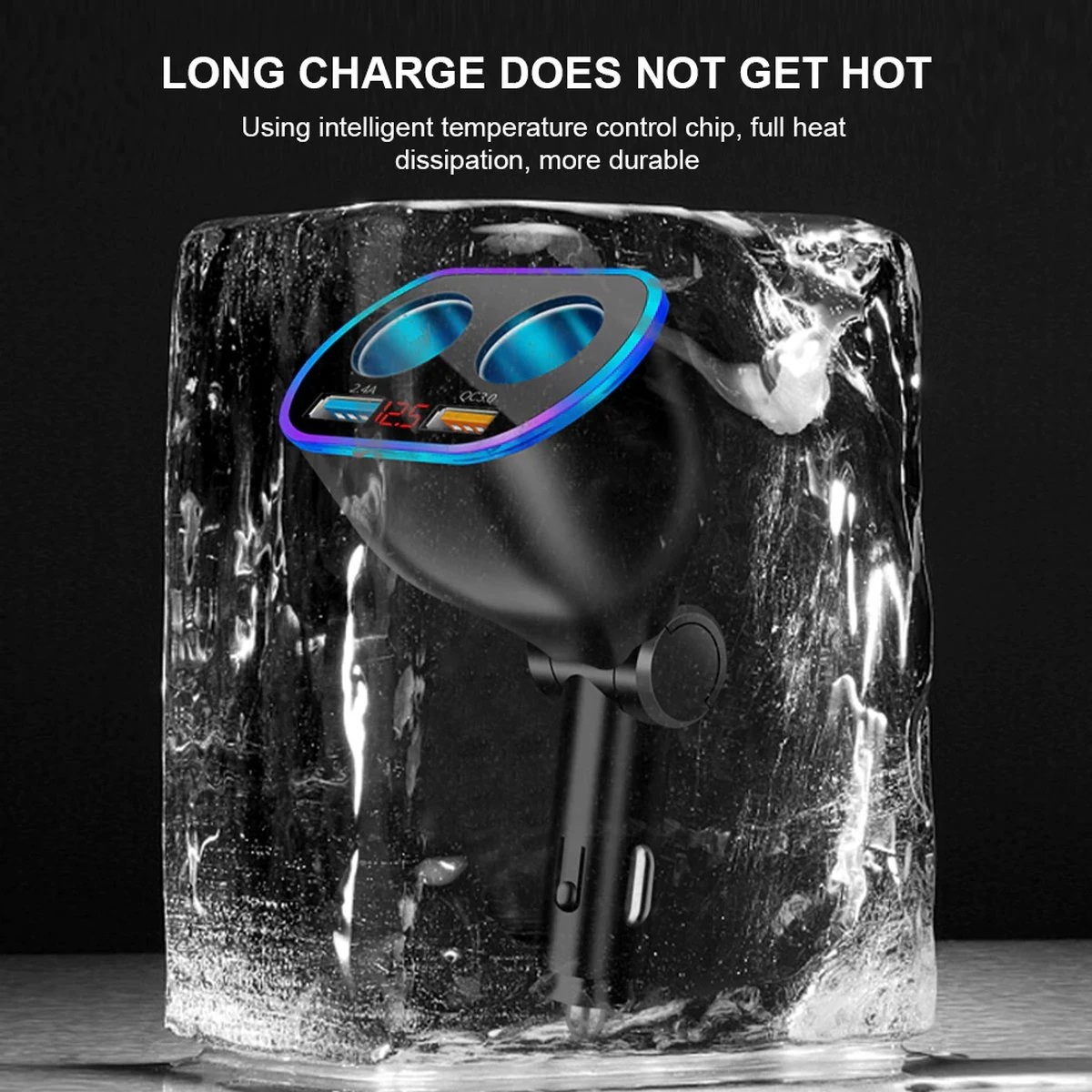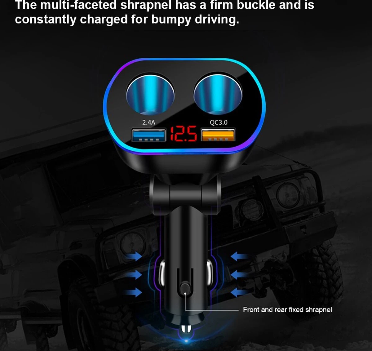 * 1. 12/24V car charger aansteker splitter met dual USB, dual lichter, digitale voltmeter en LED kleurrijke licht.