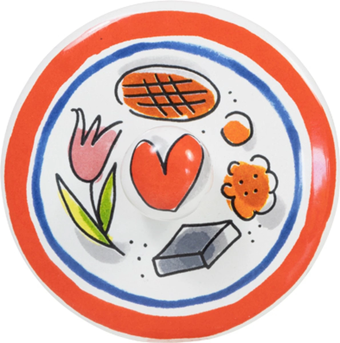 We love Holland! De nieuwe Hollands Glorie lijn van Blond Amsterdam is vormgegeven in frisse rood/wit/blauwe tinten en voorzien van typisch Hollandse illustraties. Op dit suikerpotje staan illustraties van het meisje met de parel en Hollandse aardbeien.