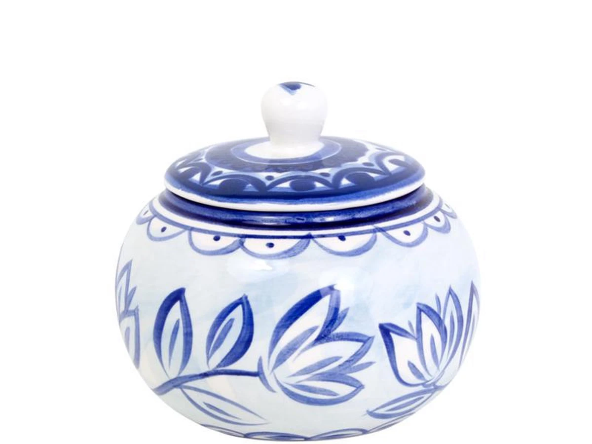 Ook zo dol op Holland? Dan is deze ‘Delfts Blond’ suikerpot helemaal geschikt voor jou. Een servieslijn met Blond interpretatie op het traditionele Delfts blauw. De illustraties zijn geïnspireerd op typische Hollandse tafereeltjes zoals schaatsen, fietsen in Amsterdam en varen.
