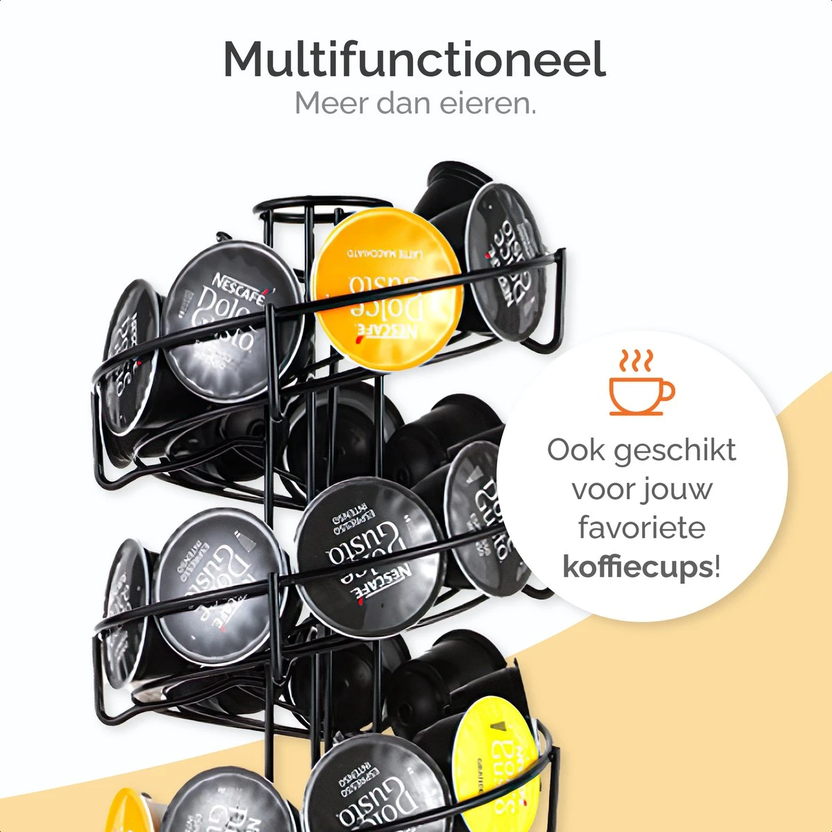 Met het praktische Goliving eierrek bewaar je jouw eieren vanaf nu op een vaste plek in de keuken. Met de stevige voet en draaibare ontwerp heb je de eieren altijd binnen handbereik. Het zwarte design ziet er bovendien erg gelikt uit.