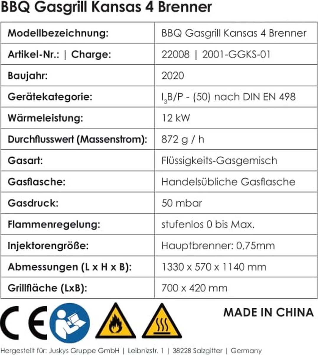 Gasdruk: 50 mbar