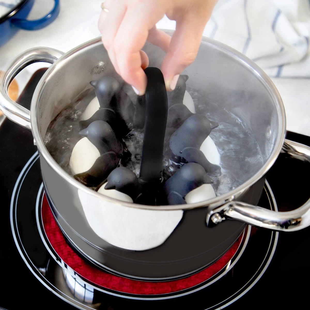 Egguins eierhouder van Peleg Design. Eierhouder in de vorm van een groepje pinguïns. De Egguins cook, store & serve egg holder kan zes eieren tegelijk bewaren. Zet ze in de koelkast, in een pan kokend water en daarna op tafel. De makkelijkste manier om eieren in kokend water te leggen is met deze pinguïn eierhouder. De houder is gemaakt van plastic en heeft een afmeting van 14,7 x 12,1 x 12,6 centimeter.