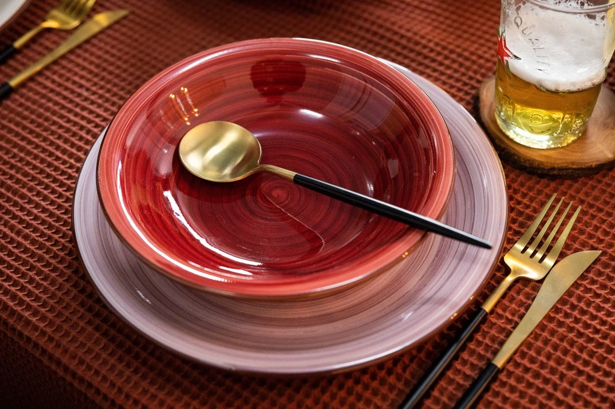 Studio Tavola Diep Bord Rimini Ø 21 cm – 6 StuksServeer de lekkerste mediterraanse gerechten op dit kleurrijke servies van Studio Tavola. De warme kleuren zijn perfect op elkaar afgestemd waardoor de verschillende kleuren toch een geheel vormen. Let wel op: deze borden worden gemixt geleverd, er kan dus geen kleur gekozen worden. Combineer de diepe borden met bijvoorbeeld de dinerborden, kommen of mokken uit de collectie, of kies juist voor ander servies!
